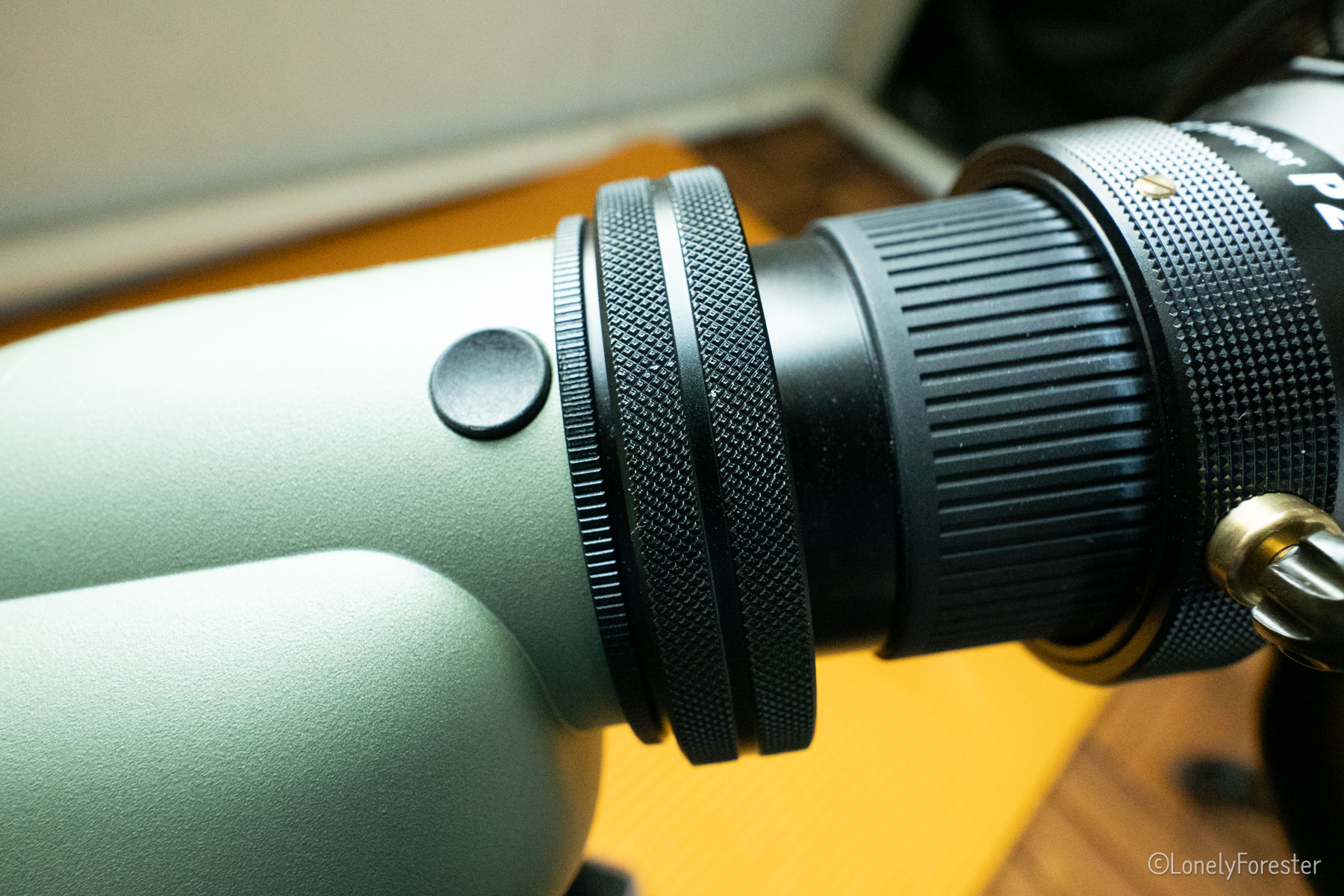 또 체결된 상태로 p2어댑터로 접안부를 늘리면 시야원이 작아지는데, 이렇게해 놓고 광축을 맞추면 좀더 정확하게 광축을 잡을 수 있습니다. p2터보어댑터를 사용하시는 분이 계시다면 활용해볼만한 방법이라고 생각됩니다.
