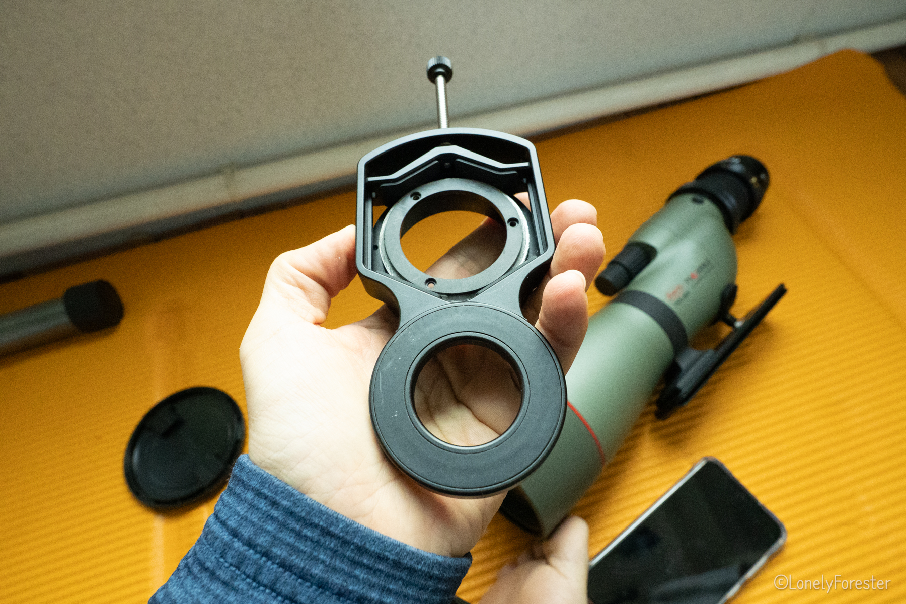 우선 사전적으로 각메이커에서는 메이커마다 독자적인 디지스코핑 시스템을 구축해서 관련 제품을 판매하고 있습니다. 그것과 별개로 일본에서 하이앤드 똑딱이(센서크기가 작아 컴팩트하며, AF성능이나 연사속도가 빠른 컴팩트 카메라)가 많이 나오던 시절, 이 카메라를 활용해 디지스코핑 탐조사진을 찍는것에 매력을 느껴 맞춤형 디지스코핑 어댑터를 만드는 회사를 차린사람이 있습니다. (이시마루 키요루, 디지스코닷컴 https://www.turboadapter.com/index.htm)